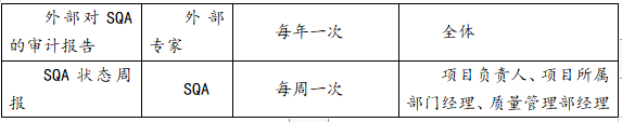 (1)SQA人員確定報告評審結果的時機及報告對象。SQA報告的種類及報告時機和頻度見下表: