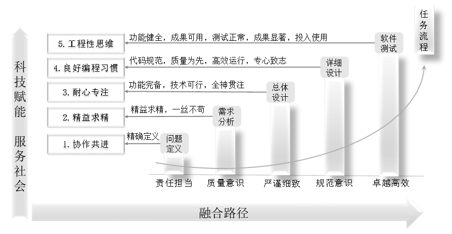 軟件系統通常是由多個組件、模塊和子系統組成的,它們之間通過復雜的交互來實現整體功能。軟件工程課程教學目標要求培養學生的系統思維和工程性思維,能夠從全局的視角看待問題[9],有助于理解模塊之間的關聯關系與邏輯層次,以及它們對整個系統的影響。在軟件工程課堂中課程思政的融合路徑如下: